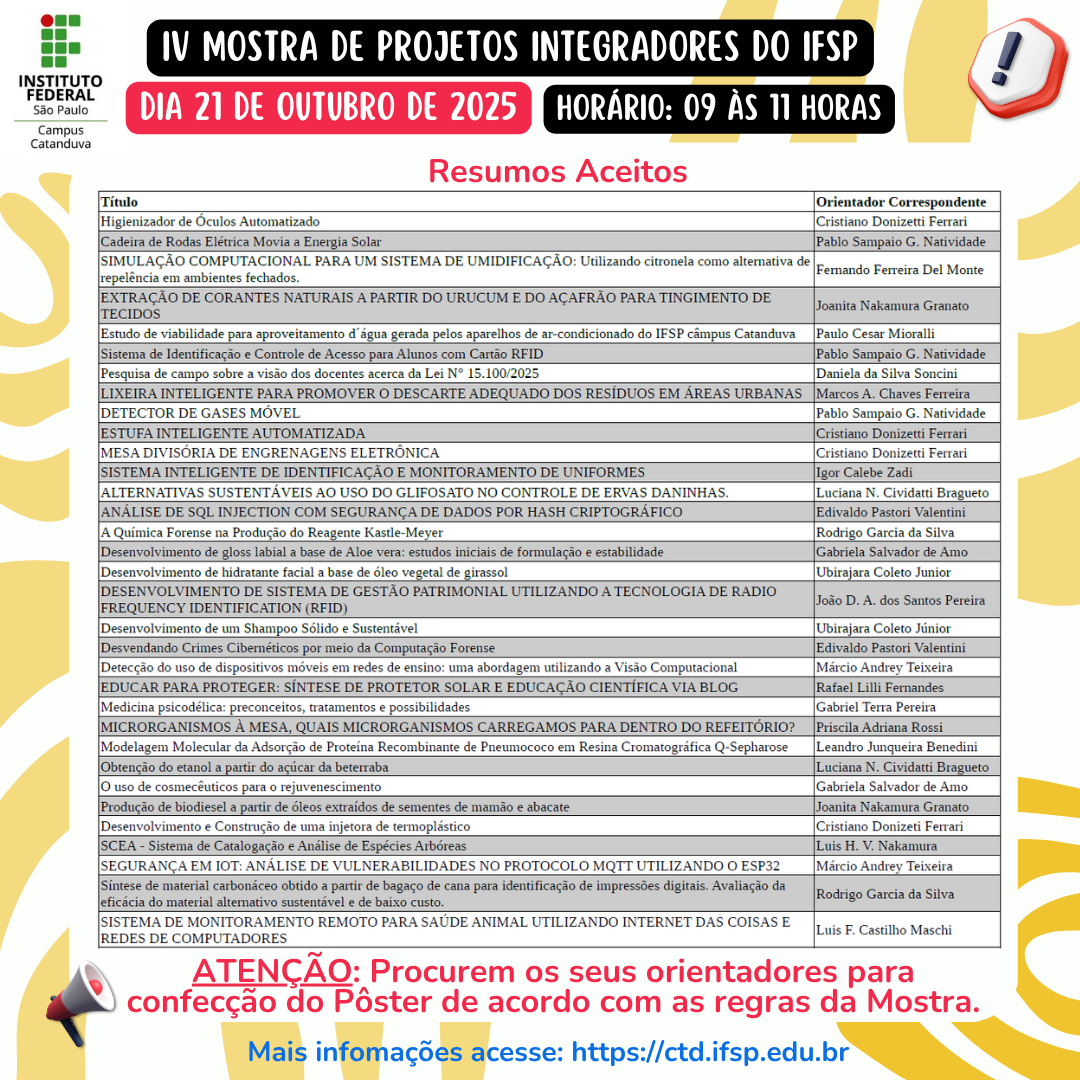 IV Mostra de Projetos Integradores do IFSP Campus Catanduva